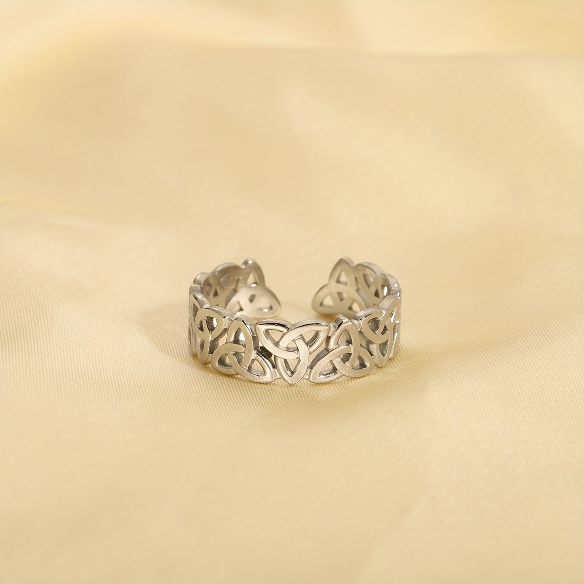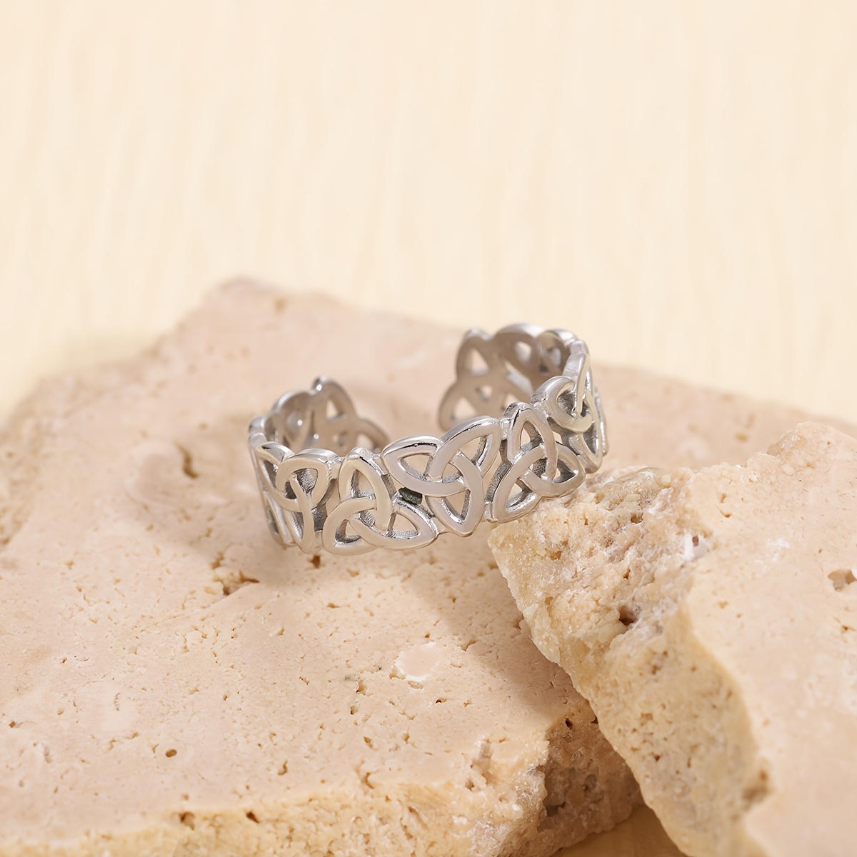 1 Piece Celtic Knot Stainless Steel Open Ring, Retro Hollow Woven Band, Trendy Personalized Jewelry, Perfect Gift Choice