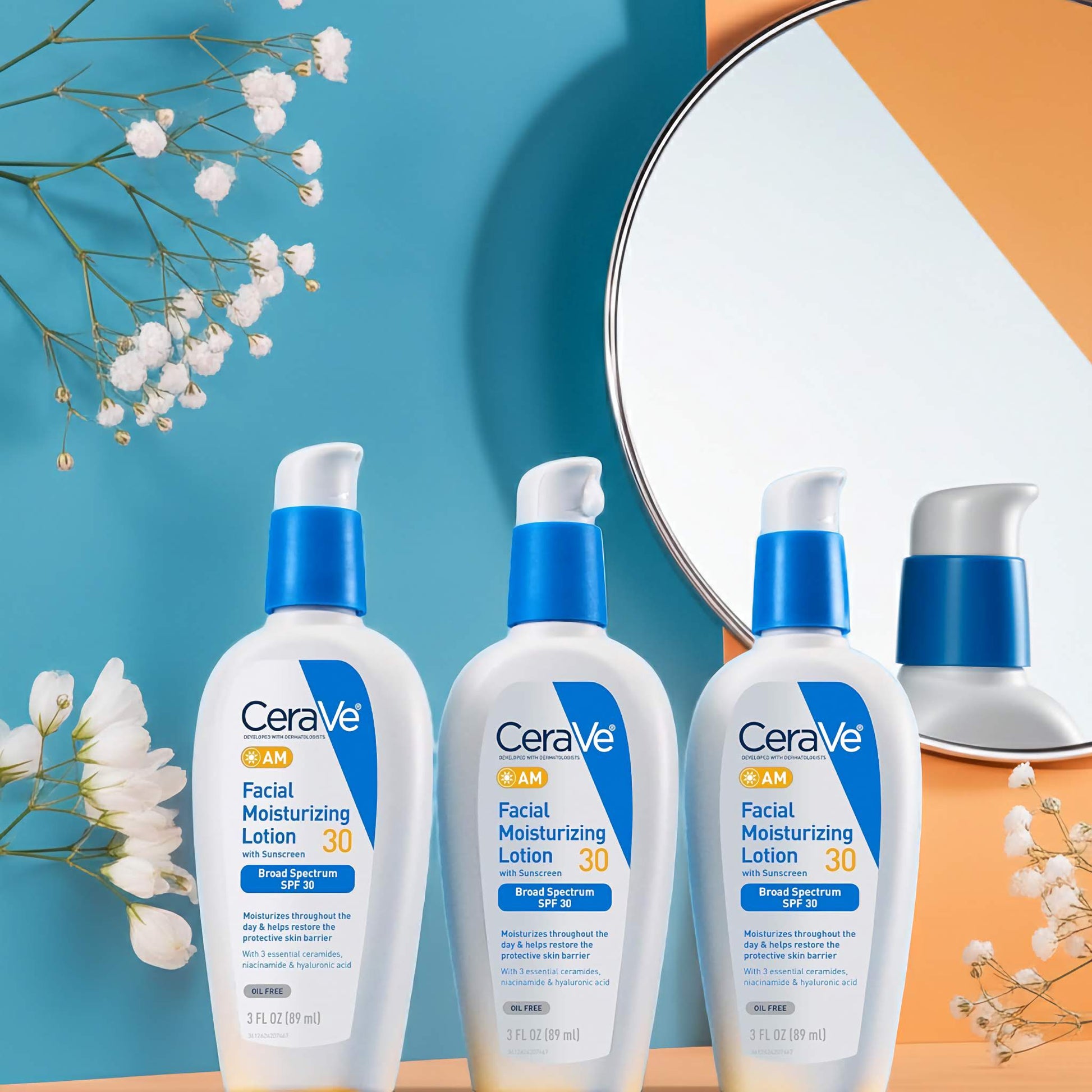 CeraVe AM Moisturizer with SPF 30 for Face – Oil-Free Daily Lotion with Hyaluronic Acid & Ceramides – Non-Comedogenic Sunscreen 3 oz (89ml)